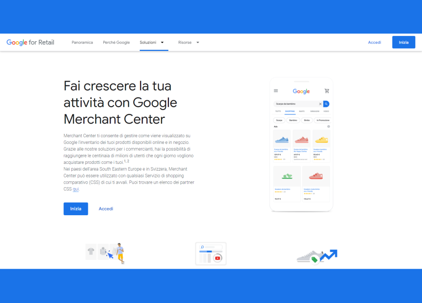Google Merchant Center ti consente di caricare su Google i dati del tuo negozio e dei tuoi prodotti e di renderli disponibili su diversi servizi offerti da Google.