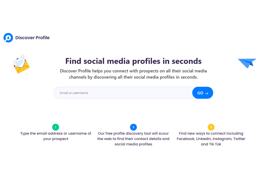 Un aiuto per connetterti con i potenziali clienti su tutti i loro canali di social media scoprendo tutti i loro profili in pochi secondi.